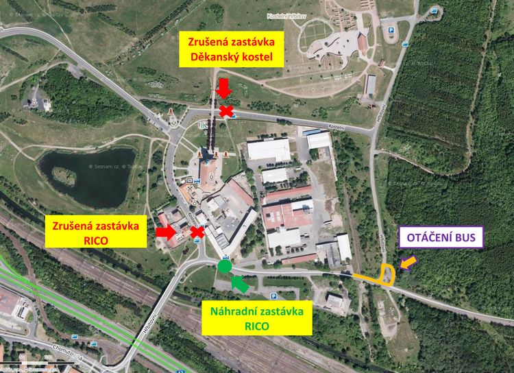 Změna umístění zastávek linek č. 16, 30 RICO a Děkanský kostel 8., 9. a 10. září 2023